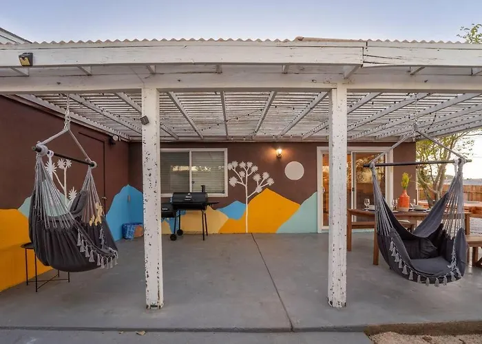 The 2-bedroom Palm Vista Retreat *Hot Tub/Cowboy Pool/Hammocks* Villa is located at a distance of 900 metres from Joshua Tree Art Gallery and provides a swimming pool, ensuring a relaxing stay. The villa includes a car park and a patio with views of the mountain.